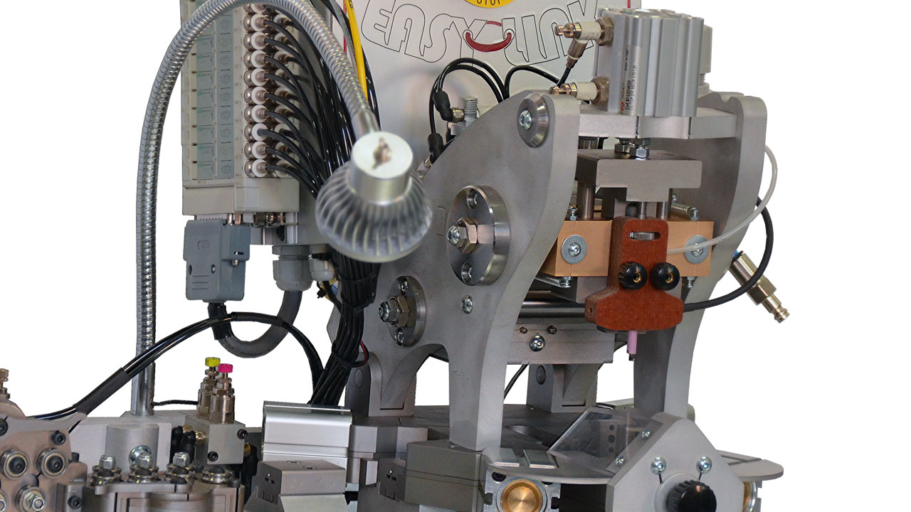 EASYLINK è il risultato di un progetto nato per soddisfare clienti che erano alla ricerca di una macchina semplice e efficiente per ammagliare, formare, chiudere e eventualmente saldare maglie di giunzione e contromaglie, permettendo così il montaggio di componenti come pendenti, chiusure, ciondoli e medagliette oggi largamente diffusi in gioielleria.